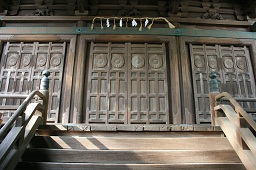 拝殿は、瓦葺入母屋造りで、間口3間、奥行き3間の広さとなっています。