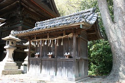 拝殿西側に鎮座しています。江戸時代、尾崎の豪商柳田家の邸内社を移設。